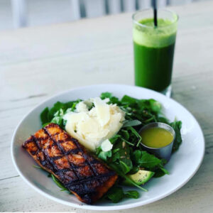 - A big salad with beans, avocado, and a slice of whole-grain bread